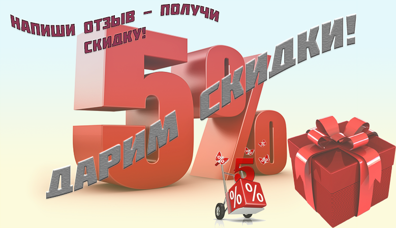 Это просто: напишите отзыв* о нашем магазине и своей предыдущей покупке в соцсетях со ссылкой на наш сайт или на странице с купленной продукцией на нашем сайте, отправьте нам ссылку на ваш отчет и укажите на что именно вы хотите скидку.
