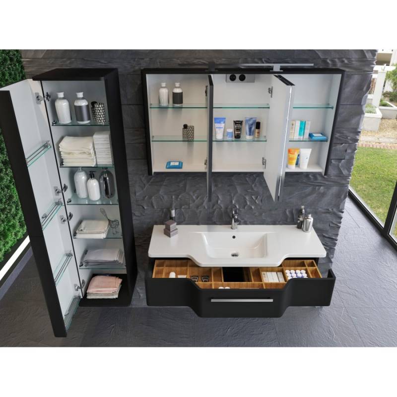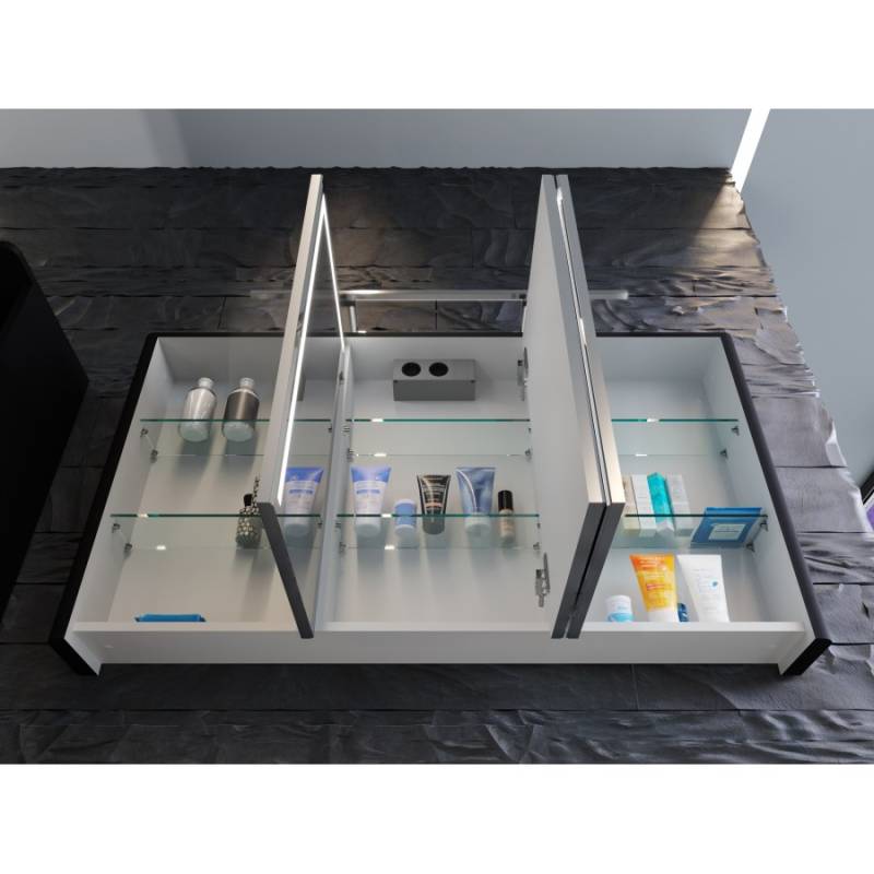 Зеркальный шкаф укомплектован LED-светильником 800 мм, а также встроенным в зеркальное полотно LED-освещением.