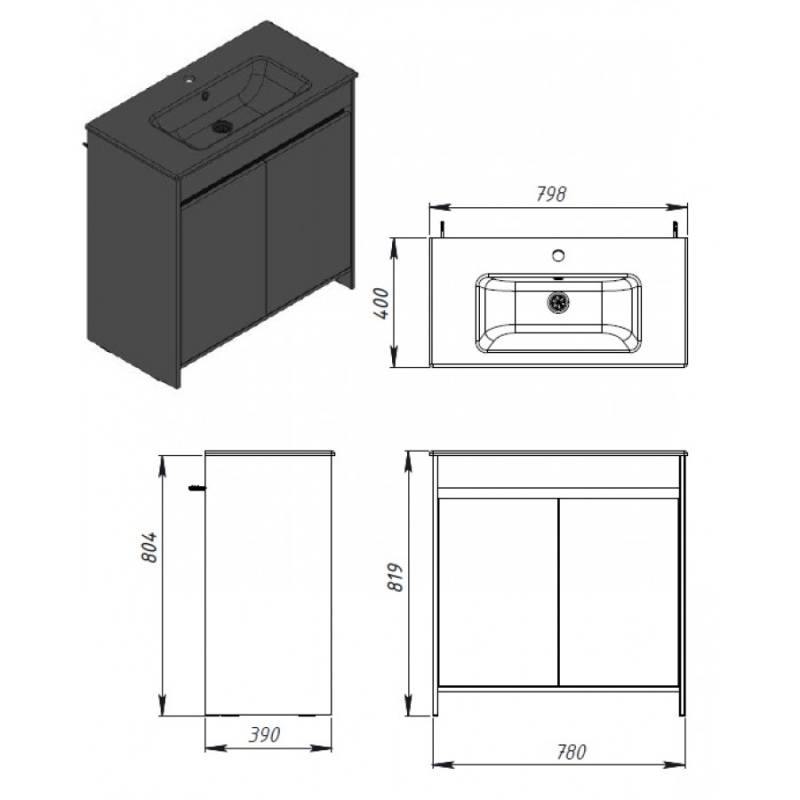2 других мебели для ванной в размере 80 на 82