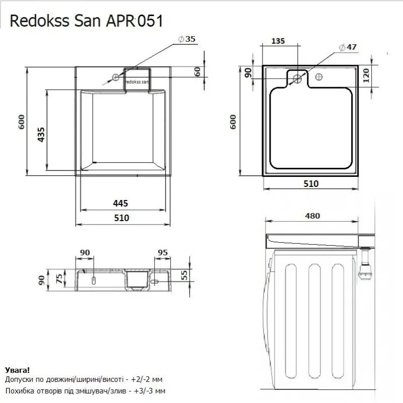 Умывальник Redokss San (Artel Plast) APR 051 - бестселлер по продажам умывальников над стиральной машинкой в Украине.