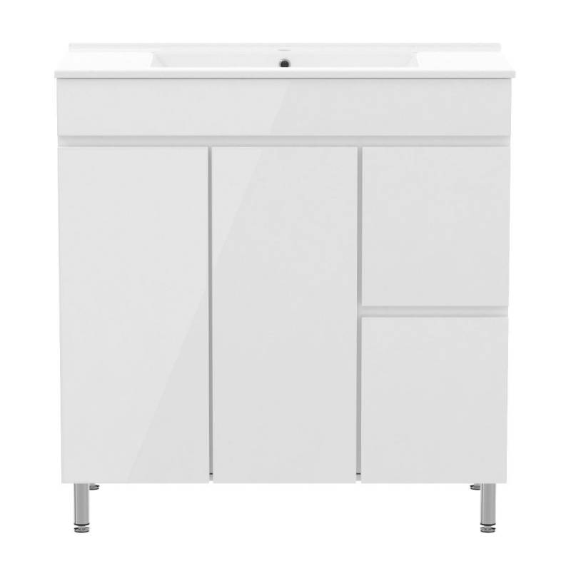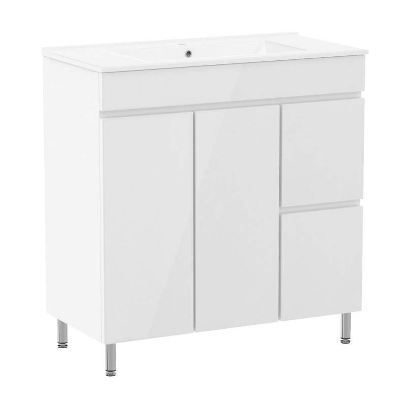 Характеристики: • Монтаж - напольный, подвесной • Одна распашная дверца, два выдвижных ящика, корзина для белья • Материал фасада – МДФ • Материал корпуса – ДСП • Покрытие краска • Цвет фасада - Белый • Цвет корпуса - Белый • Керамическая накладная раковина с переливом, 1 отверстие под смеситель Комплектация • Тумба • Раковина • Ножки Гарантия: • Тумба - 2 года • Раковина - 25 лет В случае использования продукции в общественной или промышленной сферах гарантийный срок составляет 6 месяцев