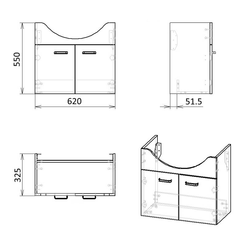 Характеристики: • Монтаж - подвесной • Две распашные дверцы • Материал фасада – МДФ • Материал корпуса – ДСП • Покрытие краска • Цвет фасада - Белый • Цвет корпуса - Белый • Керамическая накладная раковина с переливом, 1 отверстие под смеситель Комплектация • Тумба • Раковина Гарантия: • Тумба - 2 года • Раковина - 25 лет В случае использования продукции в общественной или промышленной сферах гарантийный срок составляет 6 месяцев