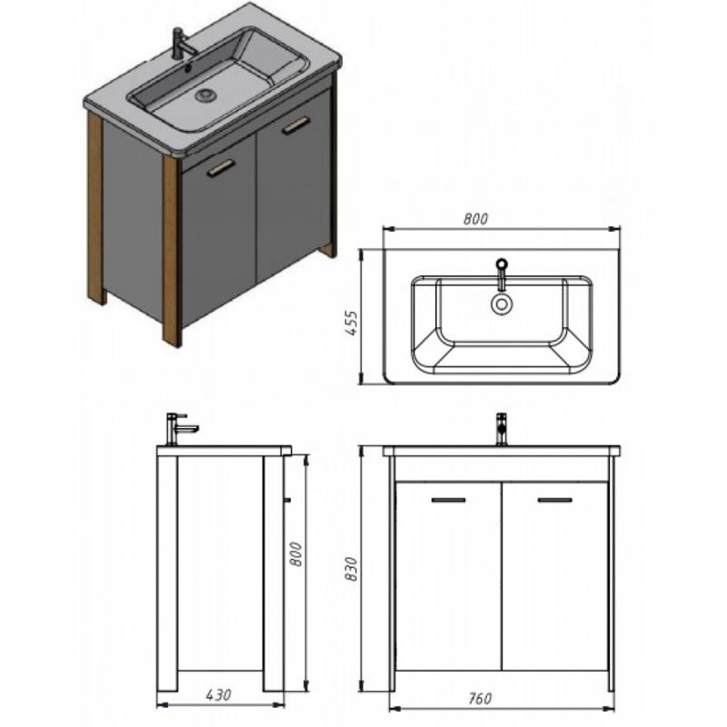 0 Відгуку Підлоговий столик з умивальником VELUM 80 см.