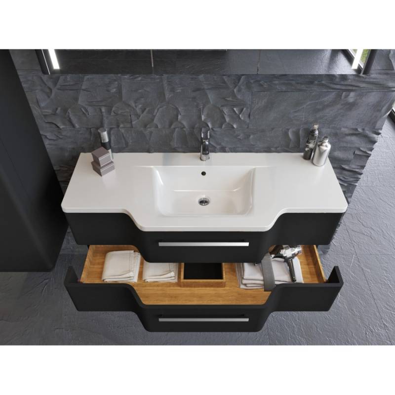 Підвісна шафа, вбудовані 2-х сторонні регульовані навіси. оснащений умивальником зі штучного каменю Marlen-128, виробник Marmorin, Польща.