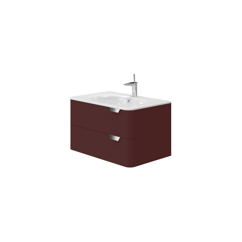 Корпус і фасадні частини меблів виконані з МДФ товщиною 16 мм. Поверхні меблів оброблені: всередині виробу - матові емалі кольору типу Titanium зовні виробу - емалі з подальшим нанесенням еластичного декоративного покриття - Тактус на дотик нагадує гуму. Кольорові покриття виконані в гамі світлих і насичених кольорів: бордовий, блакитний, чорний, сірий, білий. Встановлюються два висувних ящика з металевими боковинами з функцією самостійного розширення повного розширення, що забезпечує м'яке замикання. Меблі підвішується, в шафах монтуються регульовані навіси. Дизайн меблів збагачений ручками з нержавіючої сталі. Шафи оснащені умивальниками STELLA-80 зі штучного каменю.