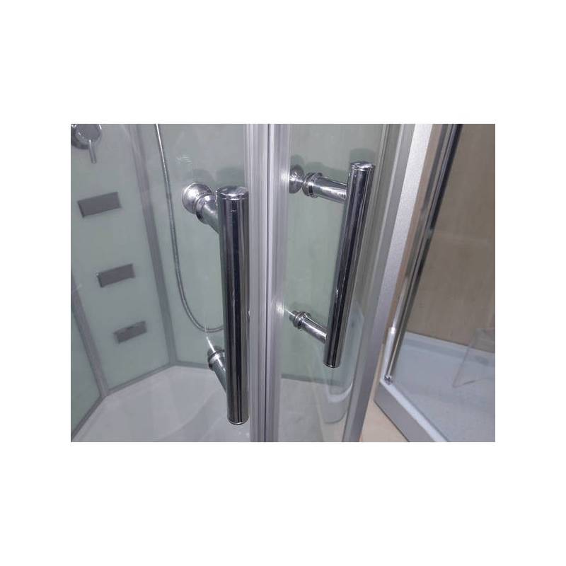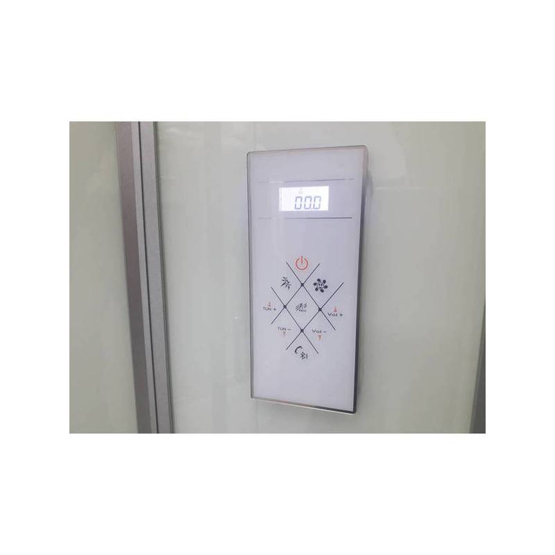 | Комплектация | Передние-задние стекла, крыша,поддон, верхний душ, вытяжка, сифон, подсветка, лейка со стойкой, гидромассаж вертикальный, радиоприемник. |