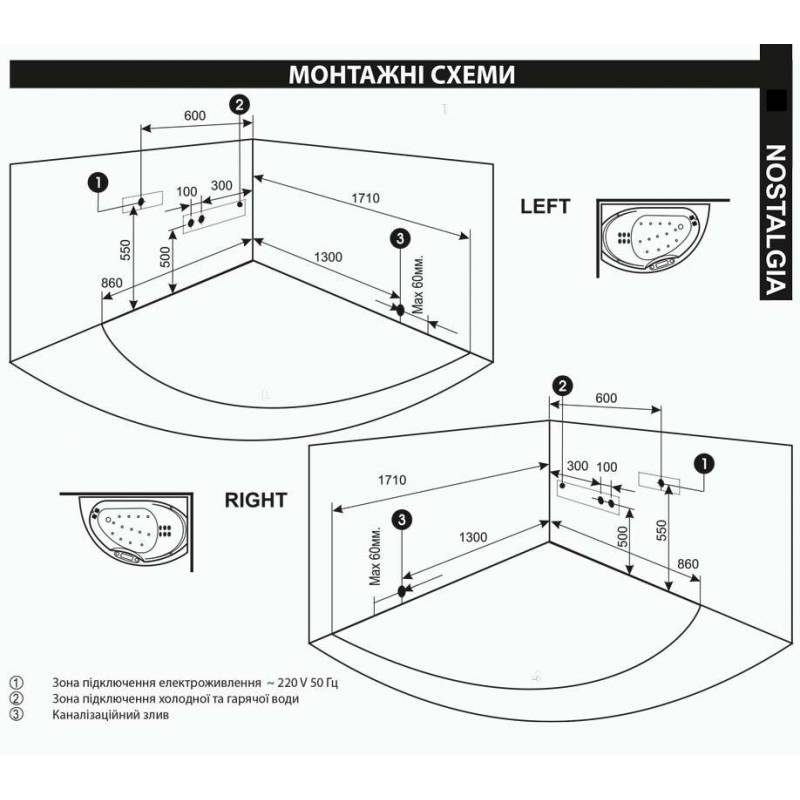 Акриловая ванна WGT Nostalgia R правая асимметричная 170*109 Easy